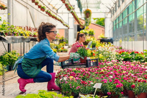 Young Women Working In Beautiful Garden Center Buy This Stock